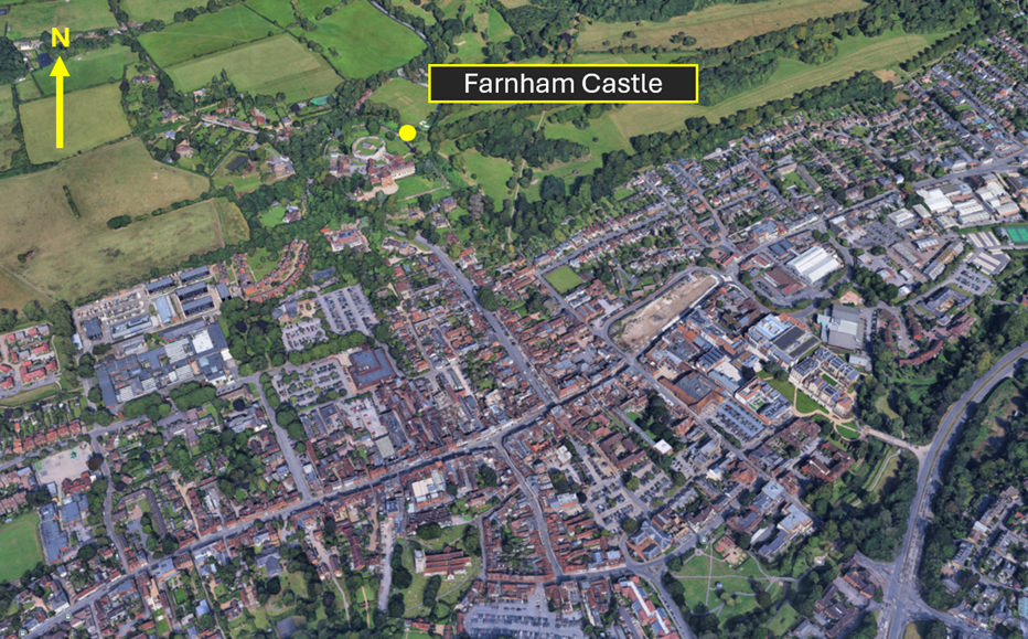 Pilots wishing to route east/west or vice versa through Farnborough’s controlled airspace can typically expect a routing following the railway line between Hook Railway Station VRP (Figure 6) and Worplesdon Railway Station VRP (Figure 3) (commonly called ‘British Rail east/west’). If this route is unavailable due to IFR traffic, an alternative routing may be offered via the A31 Tongham Roundabout VRP (Figure 7) and Farnham Castle VRP (Figure 8).
