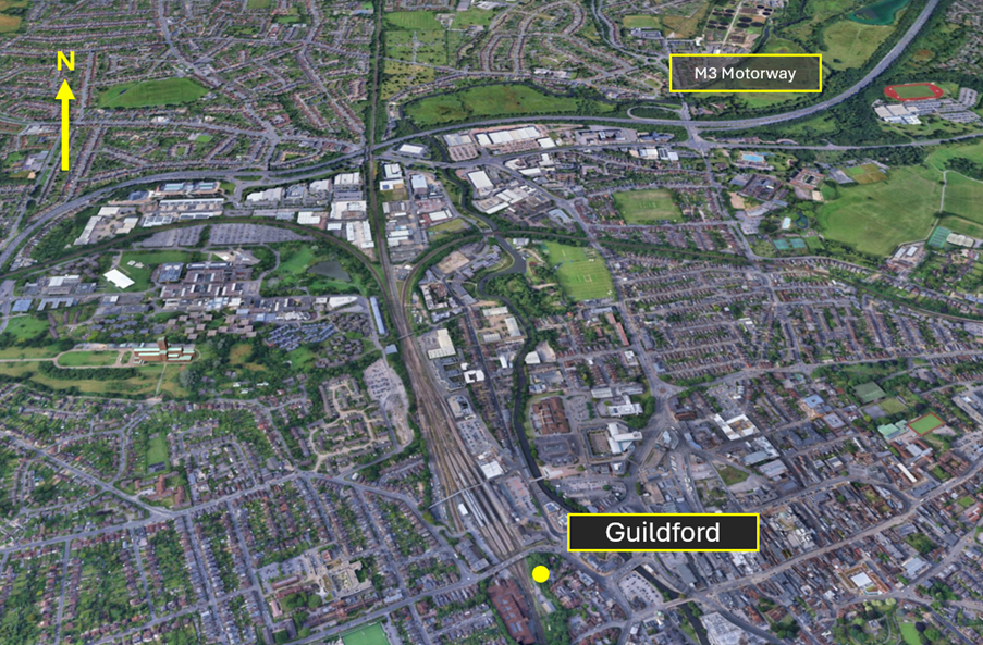 Prior to flight, pilots should familiarise themselves with both the Worplesdon Railway Station (Figure 4) and Guilford Railway Station (Figure 5) Visual Reference Points (VRP).
