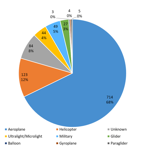 | Total reported airspace infringements | 18 | 19 | 39 | 101 | 109 | 146 | 132 | 140 | 104 | 103 | 103 | 41 |